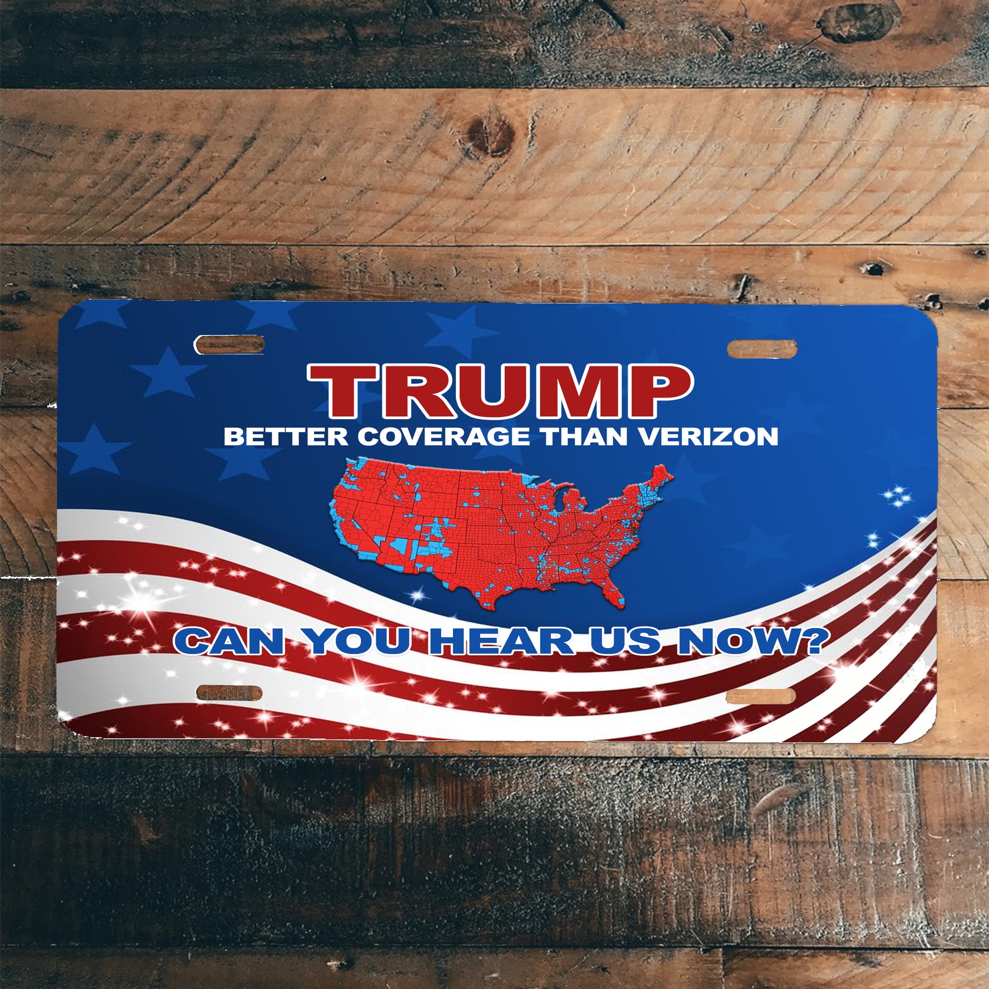 Show off your Republican pride and celebrate a Trump win with this distinctive 6" x 12" license plate features a striking red wave design celebrating American pride and patriotism. The bold graphics make a statement on any vehicle while maintaining a refined aesthetic. Durable construction ensures long-lasting visibility and weather resistance. Perfect for those who want to express their values with understated elegance and timeless appeal.